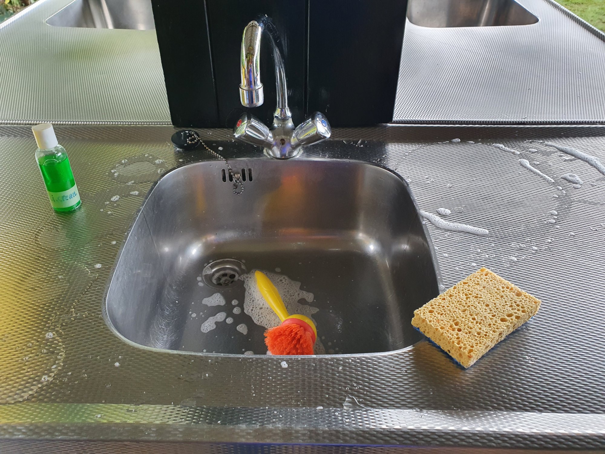 Iets anders waar ik me over verbaas is de hoogte van de afwasbakken. Ik kan er maar niet aan wennen. Het is echt peuterhoogte.