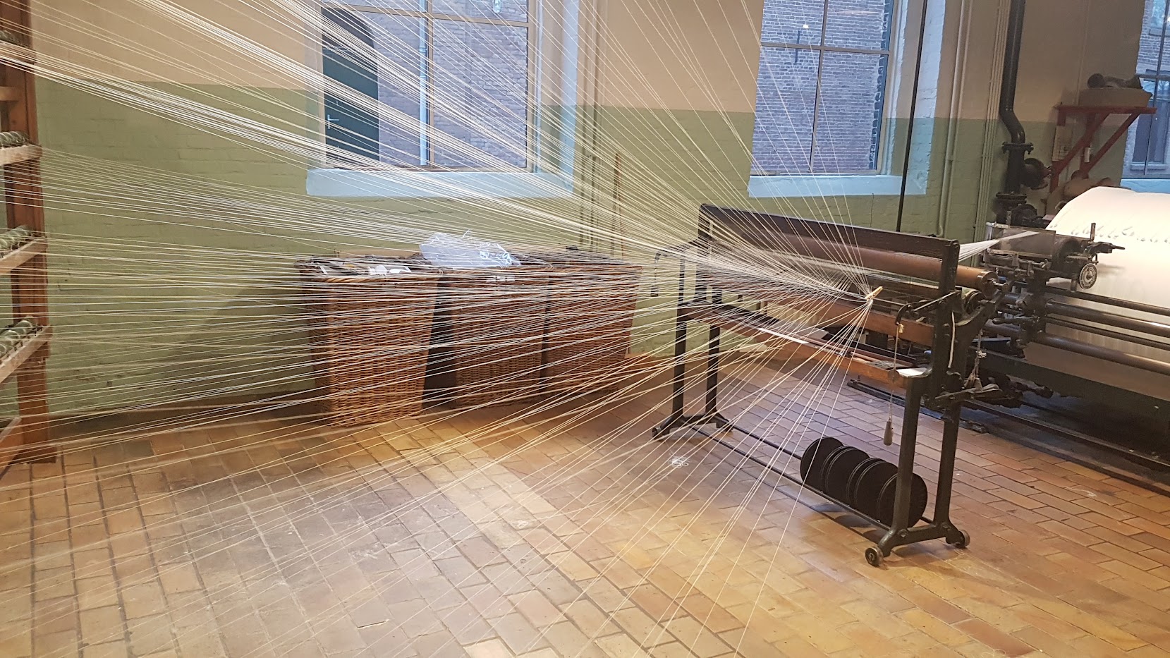 Er wordt veel gewerkt in het museum. Sommige mensen zijn kleding aan het repareren, anderen ontwerpen hun eigen sokken of shawl. Ook lopen er mensen rond die lijken nog het meest op onderhoudsmonteurs, je vindt ze vooral bij de textielmachines.